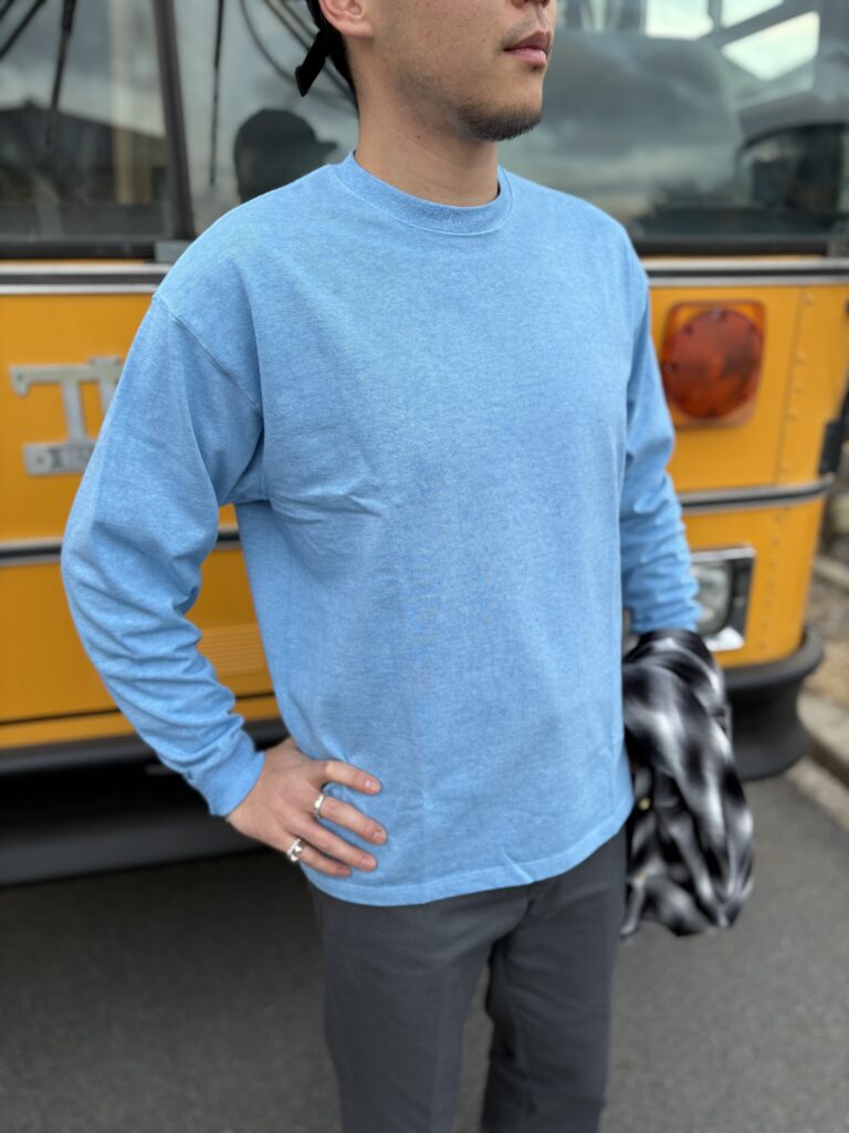 ピグメント加工が特徴的で、スウェットやパーカーのインナーとしてはもちろん1枚で着てもバッチリ決まります👍🏼